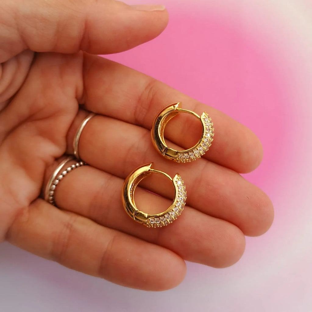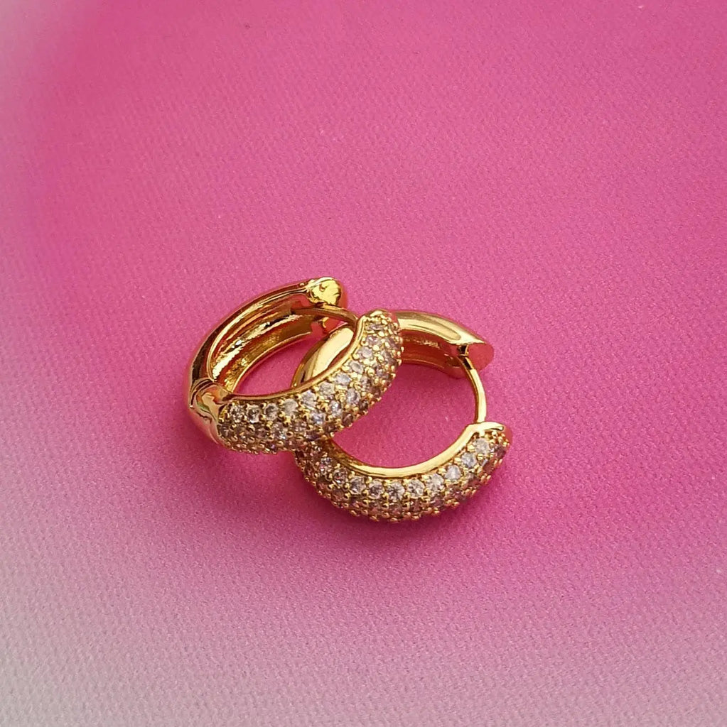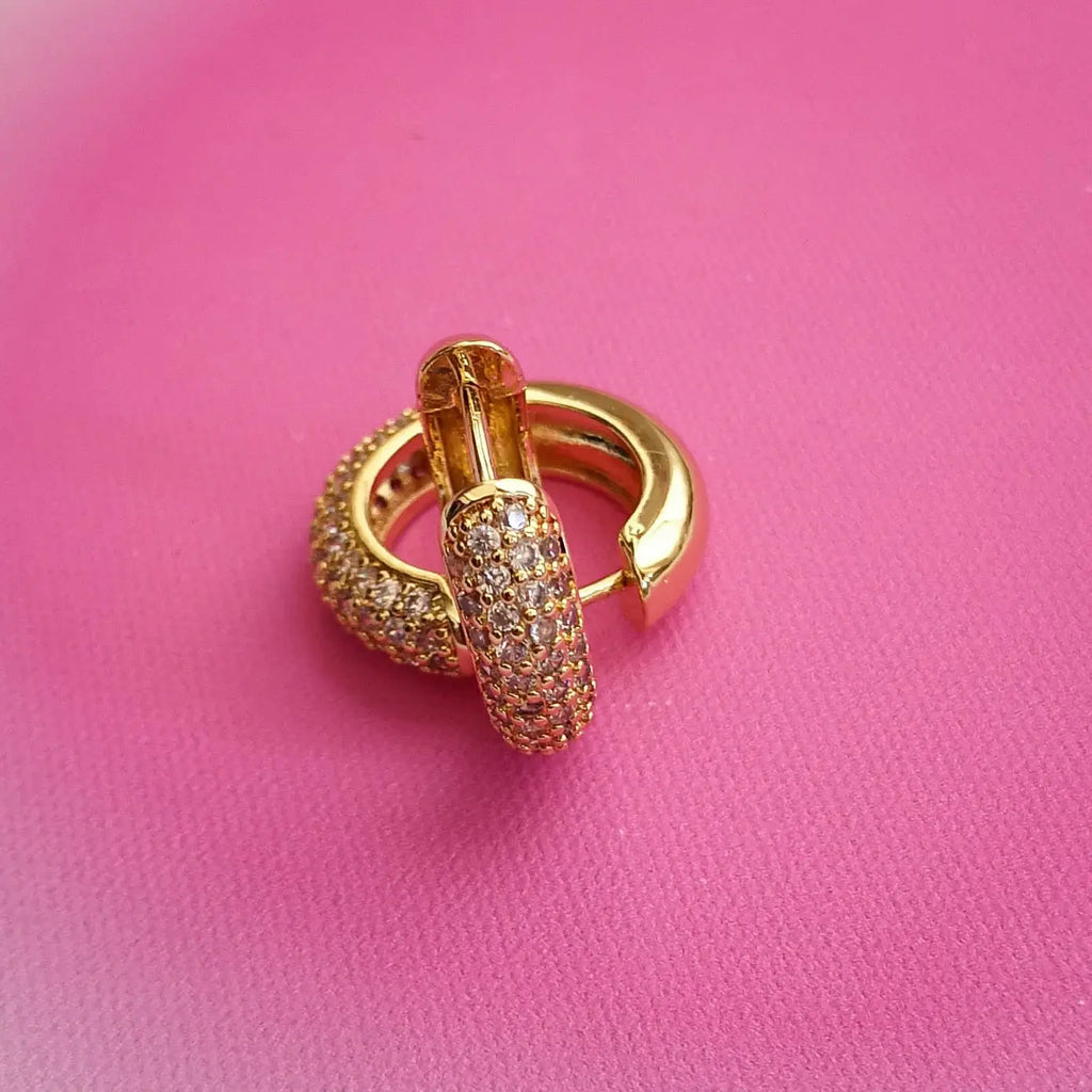 Argolas em aço inox dourado com zirconias.