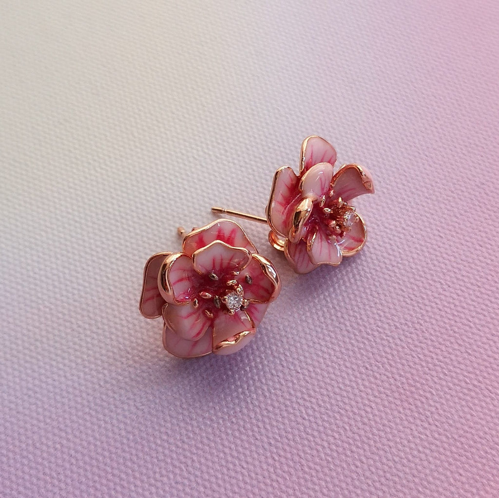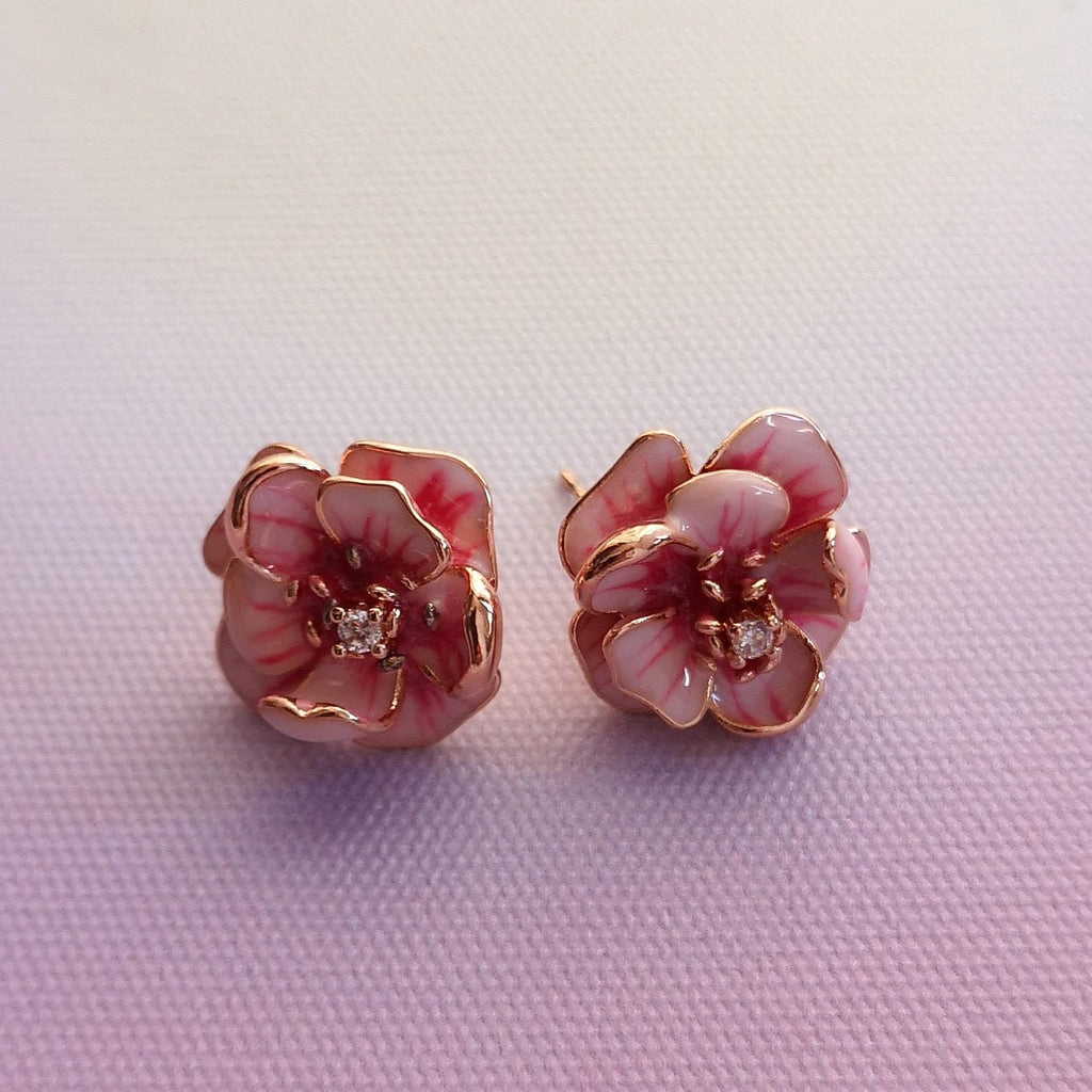 Brincos flor cor de rosa em aço.