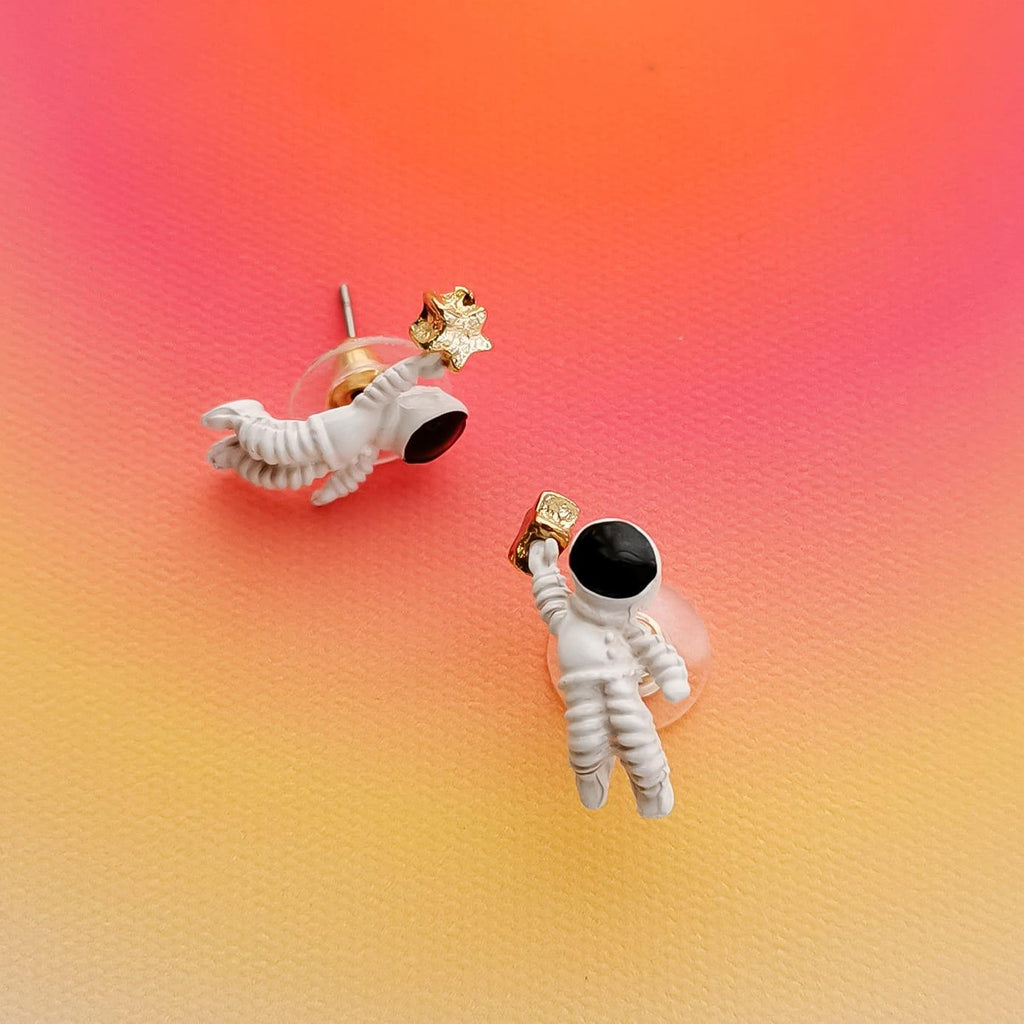 Brincos em metal anti alérgico com formato astronauta.