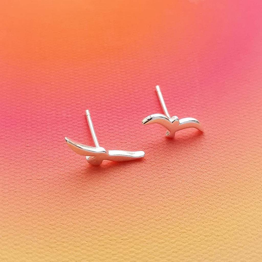Brincos mini em aço inox prateado com formato andorinha.