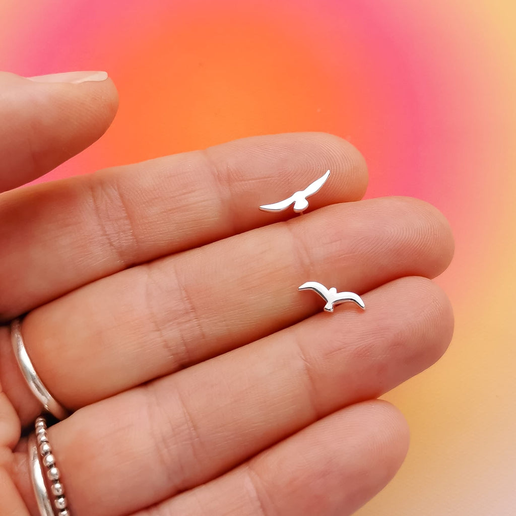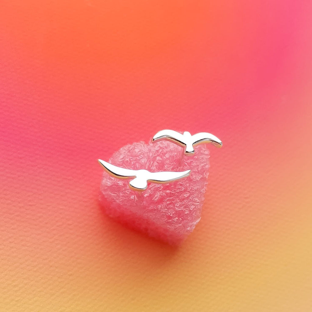 Brincos mini em aço inox prateado andorinhas prateadas